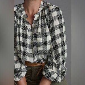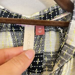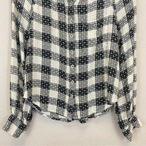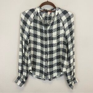 Anthropologie Pilcro Black Plaid Long Sleeve Stitch Button Down Shirt Size XS