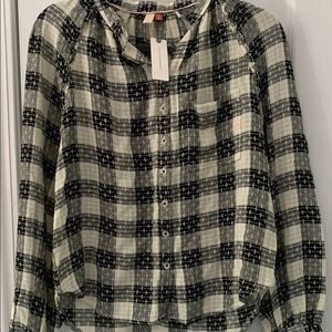 Anthropologie Pilcro Black and White Cuffed Sleeve Blouse