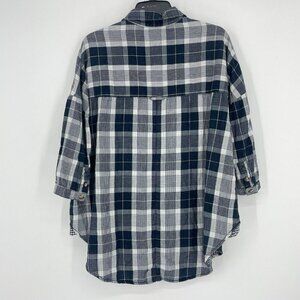Anthropologie Pilcro Blouse Women's XS Black Plaid 3/4 Sleeves Rounded Hem Tunic