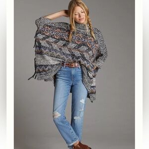 Anthropologie Pilcro Boho Magda Knit Sweater Turtle Cowel Neck Fringe Sweater