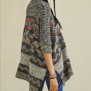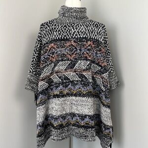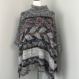 "Indulge your creative curiosity, abstract imaginations, and *unbound spirit* in this eye-catching poncho. Whether layered over a sweeping maxi skirt or your favorite denim, it's a cozy wardrobe staple for the coming cooler months.