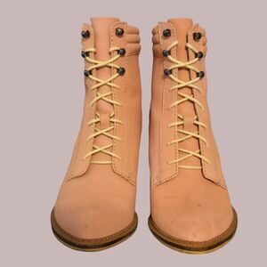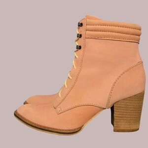 Anthropologie Pilcro Booties Womens 8.5 Hayden Matte Pink Lace Up Heeled Boots