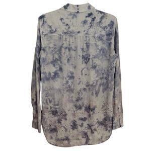 Anthropologie Pilcro Cate button front shirt in women's size XS. Purple-blue and white tye dye. Eyelet at the shoulders, back yoke and all around the bottom of the shirt. Long sleeves have button cuffs. Chest pocket. Small spot on the back of one sleeve and at the back shoulder - see photos.