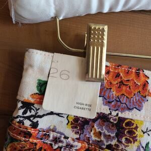 New with tags size 26 Anthro Cigarette jeans with the prettiest neutral floral garden print. New with tags, slim straight fit. Raw hem, zip fly works smoothly. 91% cotton, 9% polyester, 1% elastane.