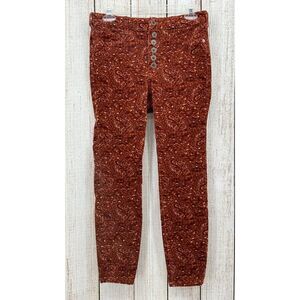Anthropologie Pilcro Corduroy Pants Size 28 High Rise Button-Fly Orange Motif