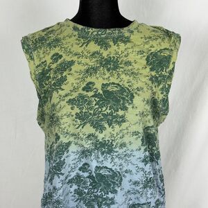Green & Blue Floral Ombre’ 100% Cotton Anthropologies Pilcro Side Scrunch Muscle Tee.