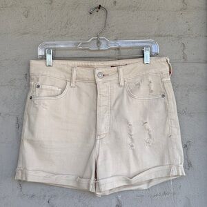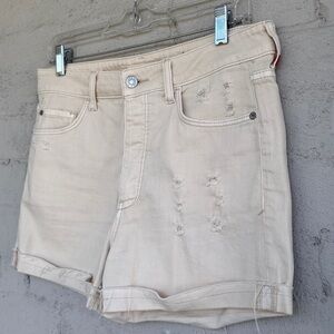 Anthropologie Pilcro Cream Button Fly High Rise Distressed Jean Shorts Waist 29