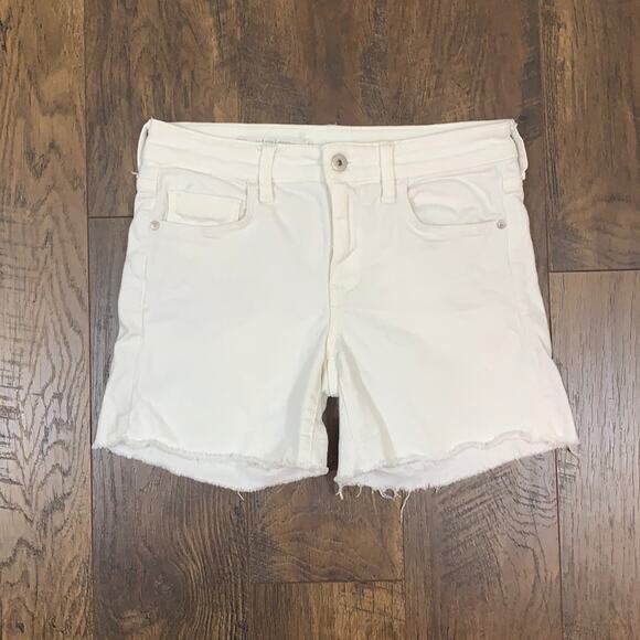 Anthropologie Pilcro And The Letterpress Cream Off White Mid-Rise Slim Cutoff Jean Shorts