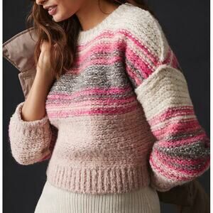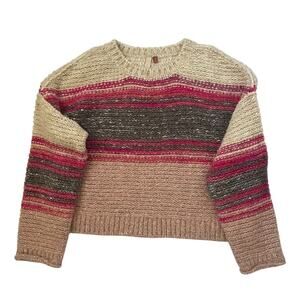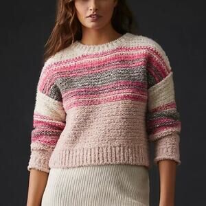 Anthropologie Pilcro Crewneck Pullover Sweater - Pink Stripe - Boho - Size XL