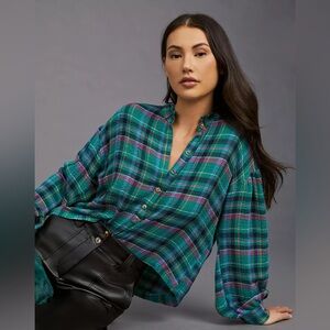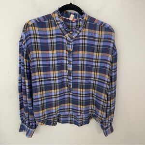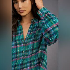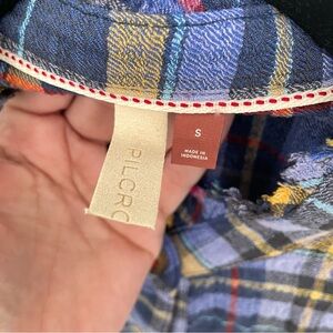 Anthropologie Pilcro Cropped Puff-Sleeve Blouse size Small Blue Yellow Plaid. 15