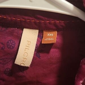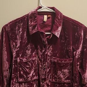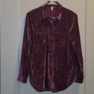 Anthropologie Pilcro Crushed Raspberry Velvet Button Classic Shirt XXS OVERSIZED
