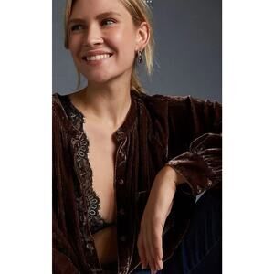 Anthropologie Pilcro Crushed Velvet Femme Buttondown Shirt Cocoa sz XXSP Brown