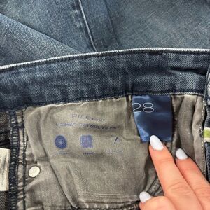 Anthropologie Pilcro Dark Wash Flare Jeans Raw Hem Size 28