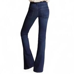 Classic Pilcro by Anthropologie Demilune bootcut jeans in a deep dark wash. Flattering mid-rise fit with a subtle bootcut leg that balances the silhouette and works perfectly with boots or heels. $148 retail