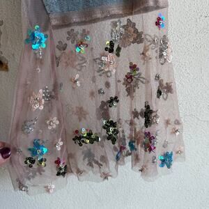 ~ Sheer tulle hem with floral embroidery and sequins = instant outfit