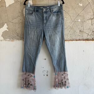 Anthropologie Pilcro Denim Embroidered Sequin Mesh Hem High Rise Jeans Womens 28
