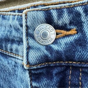 Five pocket styling. Distressed. Step hem. Acid wash style. Size 25. Excellent used condition.