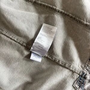 Beautiful and soft - sure to elevate any outfit! Collared. Four front-patch pockets. Button front closure. Long sleeves with button detail. Curved hem with slits and floral detail. Intentional distressing throughout. Oversized. Cotton, lyocell. Excellent condition.