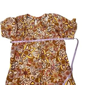 Anthropologie Pilcro Floral Tapestry Puff Sleeve Dress Size XS button linen rust