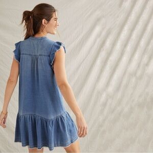 Anthropologie Pilcro Flounced Tunic Chambray Denim Flutter Sleeve Mini Dress XS
