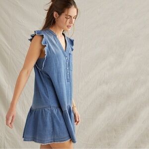 Anthropologie Pilcro Flounced Tunic Chambray Denim Flutter Sleeve Mini Dress XS