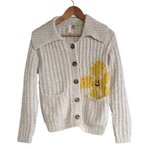Anthropologie Pilcro Flower Cardigan Sweater Womens XS Tan Wool Cheerful Smile
