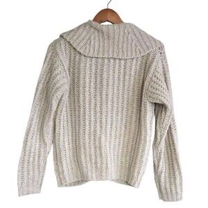 This Anthropologie Pilcro Flower Cardigan Sweater is a cheerful and stylish choice for women in size XS. The sweater features an open-knit solid design with a V-neckline and long sleeves, perfect for layering in the winter, fall, or spring. The cream-colored wool blend material is lightweight and adorned with charming flower accents, making it a versatile piece suitable for various occasions.