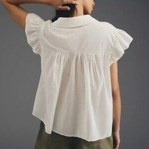 Anthropologie Pilcro Flutter-Sleeve Babydoll Top White Size M Medium 8/10