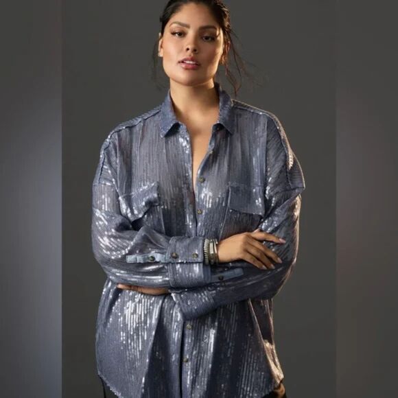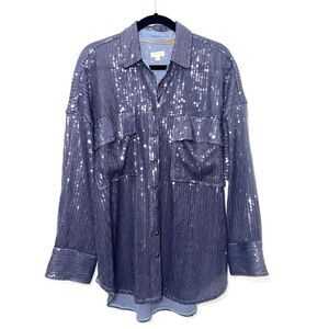 Anthropologie Pilcro Full Sequin Button Down Shirt - Blue M