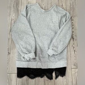 Elevate your fall wardrobe with this sold-out Anthropologie Pilcro oversized top, originally retailing for $146. Designed in a soft gray knit with a relaxed, oversized silhouette, it features a modern open back cutout and a feminine black lace trim hem that adds a layered, stylish finish.