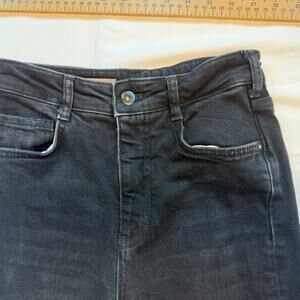 Anthropologie Pilcro High Rise Straight Jeans Black Split Hem Women’s Size 26