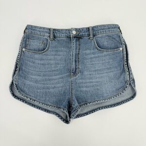 Super cute and trendy, they are like a track short cut in denim shorts!