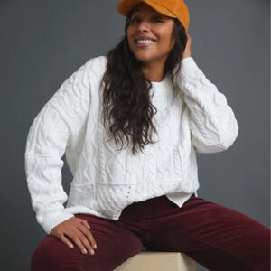 Anthropologie Pilcro Jasmine Cable-Knit Tunic Sweater Ivory