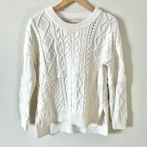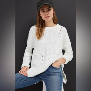 Anthropologie Pilcro Jasmine Cable-Knit Tunic Sweater Ivory. This cable-knit layer brings a charming, *oh-so-cozy* touch to your cool-weather looks - throw it on over leggings or denim for a chic, ready-for-anything ensemble. White. Size XS. Excellent condition.