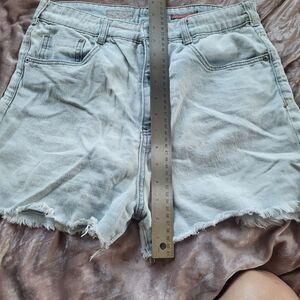 Anthropologie Pilcro Jean Shorts Ultra High Rise Light Wash Denim Raw Cut Off 30| Materials: 100% cotton | Measurements: laying flat| waist: 15" | Inseam: 2.5"| Rise: 12”