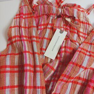 With a smocked silhouette and a striking plaid motif, this halter tank pairs effortlessly with distressed denim and dainty jewelry.