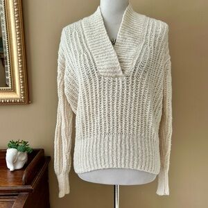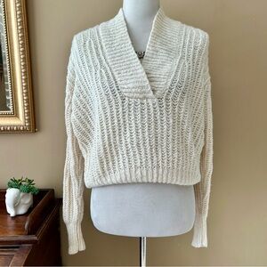 Anthropologie Pilcro Joyce V-Neck Sweater Chunky Knit White Ivory Cream Size XS