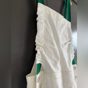 Anthropologie Pilcro White Barrel Overalls with green detailing throughout