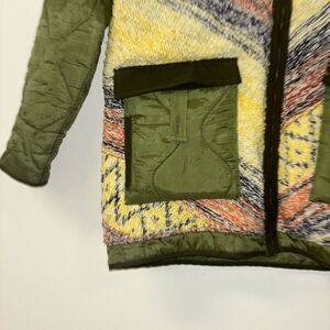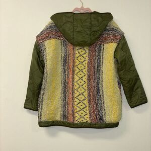 This beautiful jacket from Anthropologie is a must-have for any fashion-forward woman. The Pilcro Knit Quilted Coat is made from a cozy acrylic blend and features a textured puffer design that adds an extra touch of warmth. It comes in a vibrant green color and has a mid-length cut, making it perfect for any occasion, from travel to workwear. The jacket is beautifully embroidered with a geometric pattern and has a full zip closure, along with pockets for added convenience. It is oversized and hooded, making it comfortable for all seasons. The jacket is perfect for any vintage, bohemian, or classic look, and is sure to become a staple in your wardrobe.