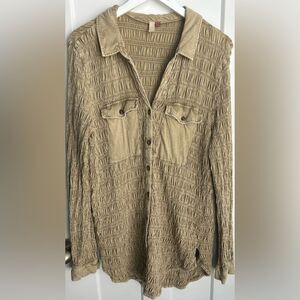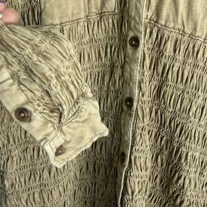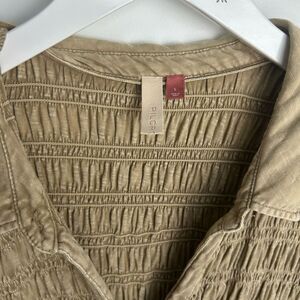 Anthropologie Pilcro L Smocked Shacket Olive Green Bohemian Festival Layering