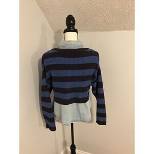 Anthropologie Pilcro Layered Blue and White Striped Sweater - Extra Extra Small