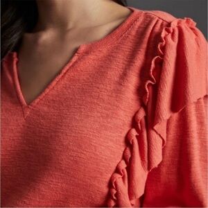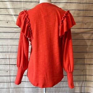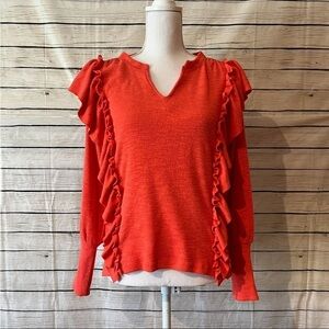 Anthropologie Pilcro Lightweight Orange/Red Ruffle Sweater Size X-Small