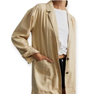 Anthropologie Pilcro Linen Blend Summer Blazer Large Cream Lagenlook Boho
