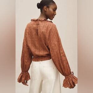 Anthropologie Pilcro Long-Sleeve Ruffled Bubble Blouse Brown Large