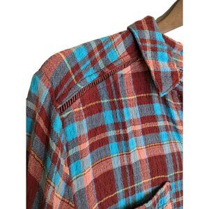 Anthropologie Pilcro Longline Plaid Button Down Shirt Medium Tunic Long Sleeve