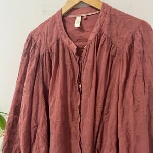 Anthropologie Pilcro Mauve Floral Embroidered Button Up Blouse Size XL