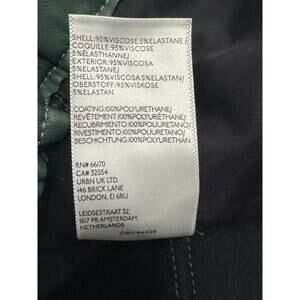 The Anthropologie Pilcro Medium Plus Faux Leather Dark Green Soft Parachute Pants are a stylish and comfortable option for a casual occasion. With a high-rise fit and relaxed style, these wide-leg pants feature a drawstring closure and flat front design. Made from faux leather fabric that is machine washable, these pants come in a solid dark green color and have a 25-inch inseam. They also include pockets for added functionality. Perfect for the warmer seasons of summer, fall, and spring, these pants are a versatile addition to any woman's wardrobe. 0771-GW-09125-1299