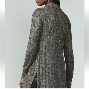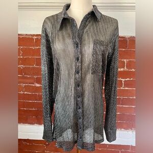 Anthropologie Pilcro Metallic Sheer Button Down Shirt Silver Black Blouse