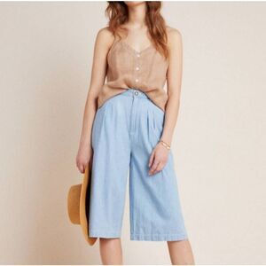 Anthropologie Pilcro Mina Chambray Culottes Pants Jeans Sz 26 Blue Cotton Pleate