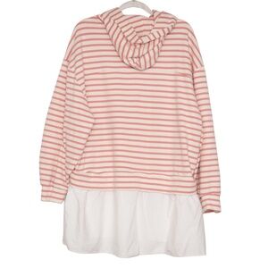 This Anthropologie Pilcro Mini Dress Hoodie Sweatshirt is SO SOFT!! It features Pink and White Stripes. Perfect for over a pair of leggings for a cozy yet fashionable day! Womens size Large, oversized fit for comfort! This is one piece, it is not 2 separate pieces. It looks like this was never worn, excellent condition!
